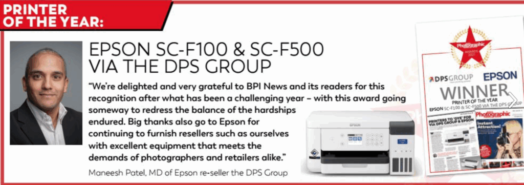 We recently featured as ‘Printer Of The Year’ for Epsons new dye sublimation printer the SC-F100 and the established SC-F500. These two fantastic Epson printers